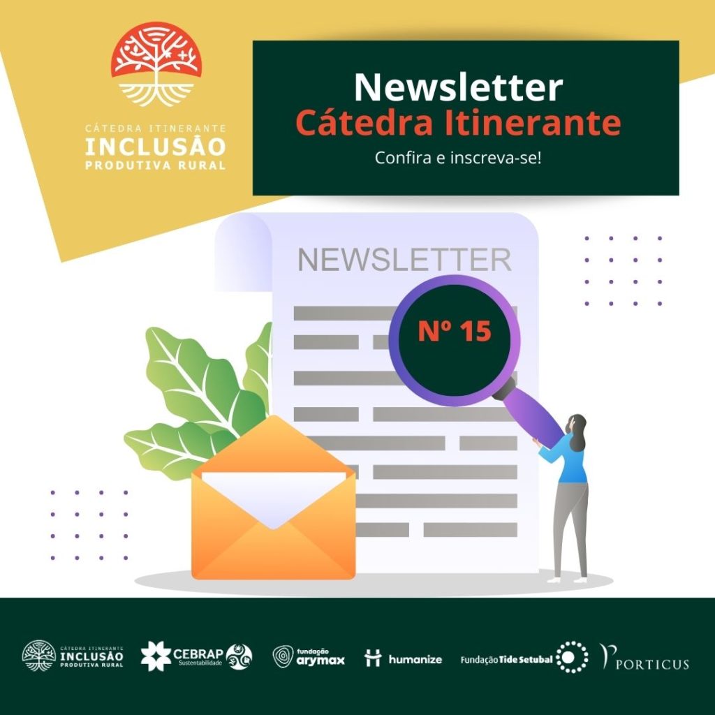 Saiu a 15ª edição da Newsletter Cátedra Itinerante “Inclusão Produtiva no Brasil Rural e Interiorano”. Nela você encontrará notícias e informações sobre políticas e experiências de inclusão produtiva no Brasil rural e interiorano e sobre as ações das organizações-sede, de parceiros e outras iniciativas da Cátedra.