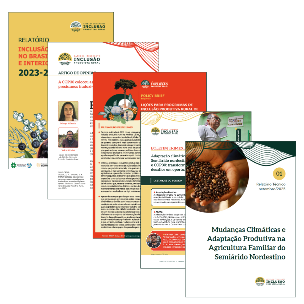 Agora, além de conhecer as pesquisas já concluídas e os materiais derivados delas, você também pode acessar os atuais eixos temáticos de pesquisa e os conhecimentos produzidos a partir delas. São relatórios, onepages, policy briefs, notas técnicas e diversos materiais que tratam sobre adaptação climática, juventude rural, digitalização e transição agroalimentar no recorte geográfico do Semiárido brasileiro.