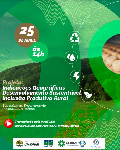 O objetivo do evento é compartilhar as experiências e promover diálogos sobre as temáticas Inclusão Produtiva Rural, Indicações Geográficas e Desenvolvimento Sustentável por meio dos resultados do projeto. Com o objetivo de aprimorar a compreensão do potencial das IGs para estratégias de inclusão produtiva e desenvolvimento sustentável, a pesquisa buscou gerar subsídios para uma política nacional de IGs que promova a dignidade na produção agrícola e a preservação dos patrimônios culturais, incluindo os alimentares.
